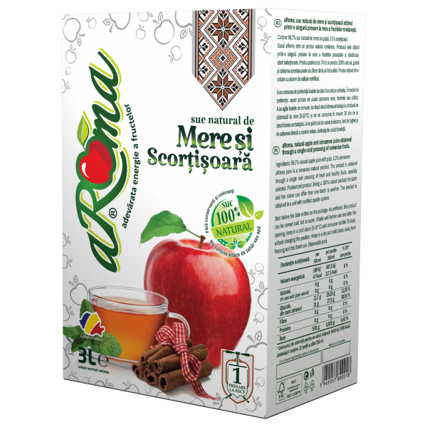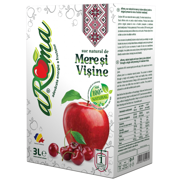 Suc de mere. Sucul natural aRoma și-a câștigat popularitatea atât datorită gustului său dulce-acrișor, cât și datorită calităților sale nutriționale. Este bogat în vitamine, minerale, antioxidanți, fibre solubile și pectine. Sucul de mere este depurativ, laxativ, antiseptic, tonic pentru muschi și nervi, antireumatic și relaxant hepatic.